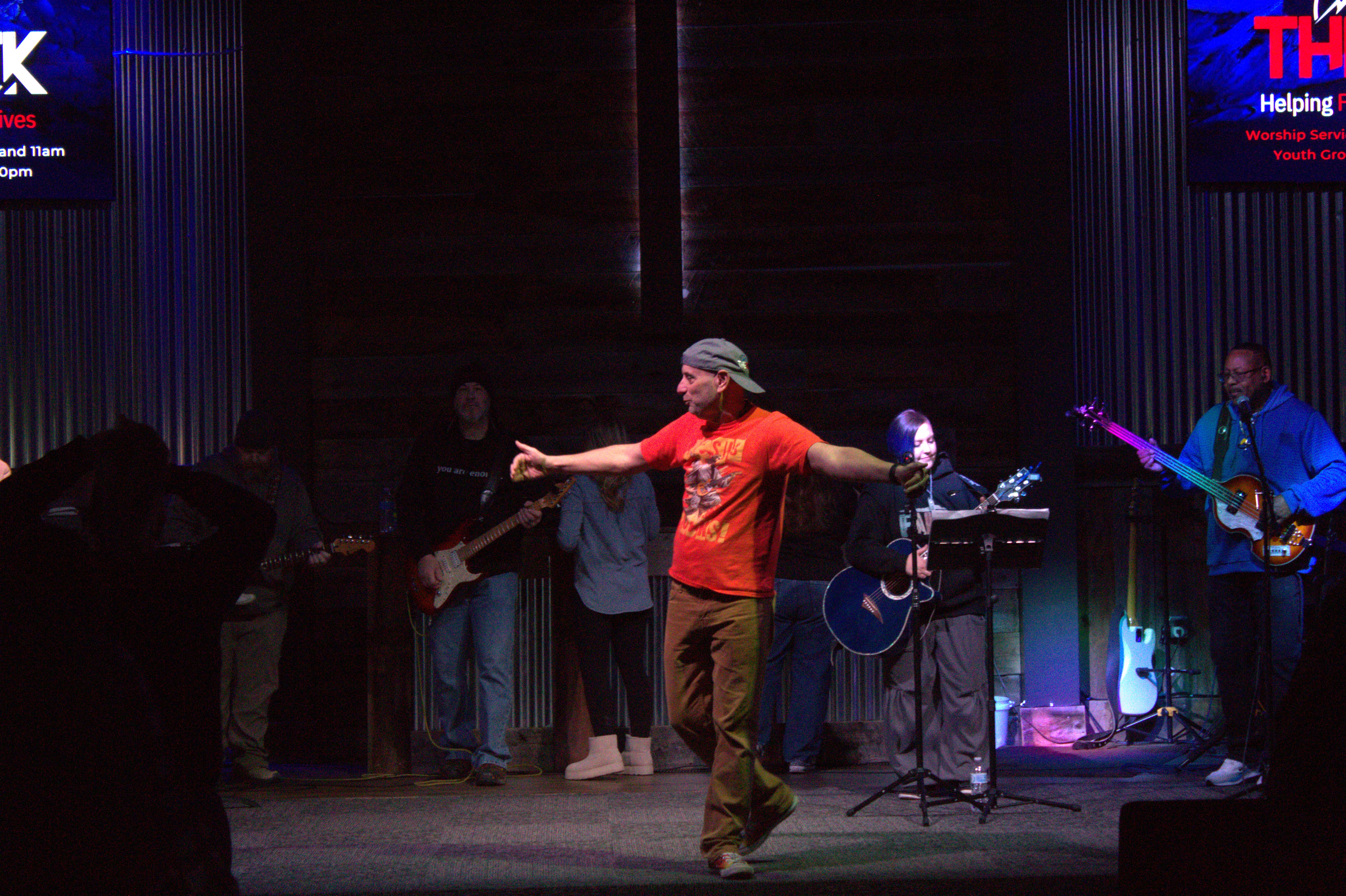 In total, The Rock Church worship service is about 90 minutes in length. Services begin with the Worship Team leading the church in music - song lyrics are projected onto the TV screens so you can sing along and/or engage with worship however you feel most comfortable. After the music portion of service is complete, our pastor, Terry Jones, will come out to share an encouraging and hope-filled message about Jesus!