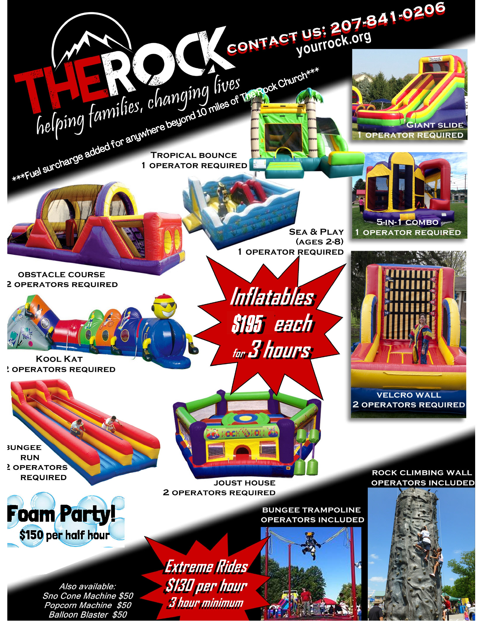 You can also have bounce houses, rock walls, and other fun activities delivered to your home or event! See below for the options and prices.